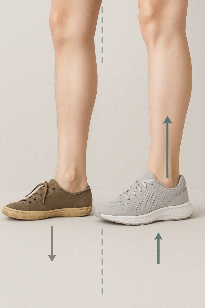 Minimizes unnatural forward lean. Avoid shoes with >10mm drop (common in old-school running shoes).