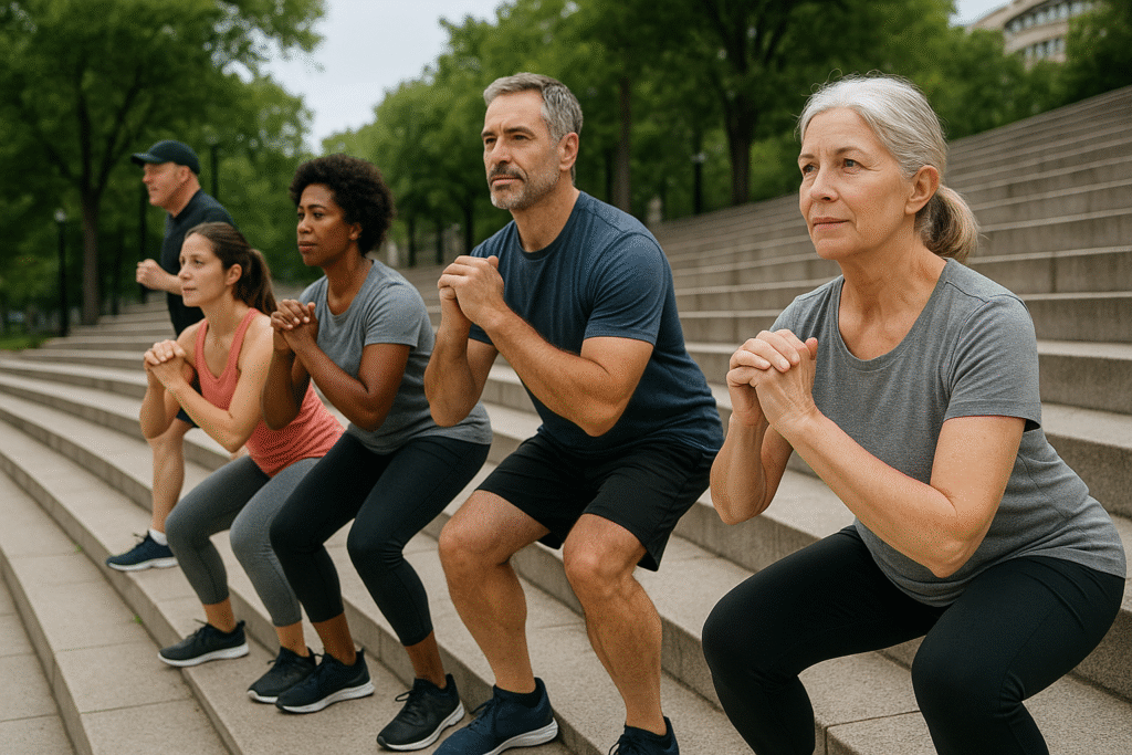 • Wall Sits (Hold 20–30 seconds)