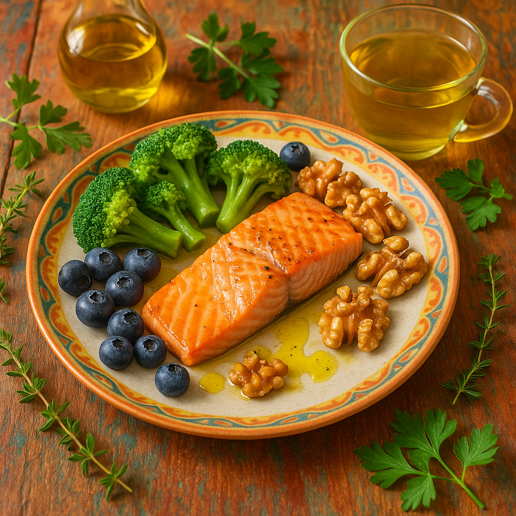 • Omega-3 fatty acids (salmon, chia seeds, walnuts)